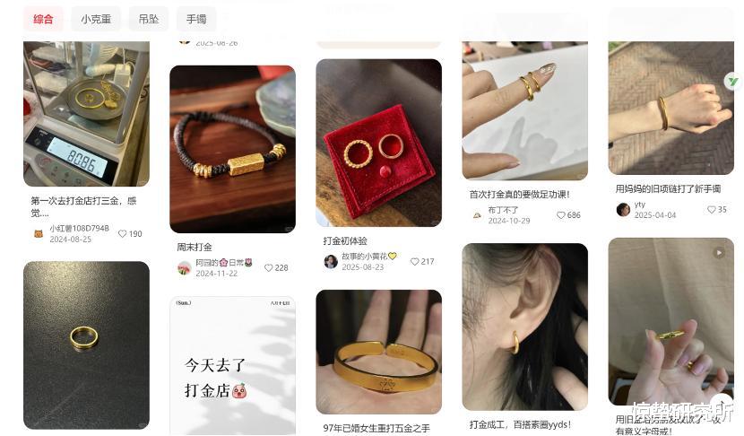 居家打金的门槛也远低于大众预期,百元级的入门工具套装已成为电商平台的热销爆款,这些包含熔金、塑形、抛光等基础功能的套装价格亲民,销量持续走高。与此同时,社交平台上“居家打金教程”相关内容的关注度也居高不下,网友们纷纷分享自制黄金饰品的全过程,从素圈戒指到小巧吊坠,各类DIY作品层出不穷。