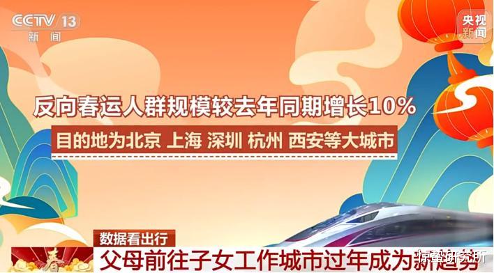 央视新闻的数据显示,父母前往子女工作城市过年已经成为新趋势。去年春节,反向春运人群规模较前年同期增长10%,60周岁及以上人群出行量同比增长近30%。其中,北京、上海、深圳等一线城市成为主要目的地。而伴随“父母进城,子女接驾”模式的普及,不仅缓解了春运压力,更催生出本地文旅、适老化消费、家庭服务等一系列新场景。