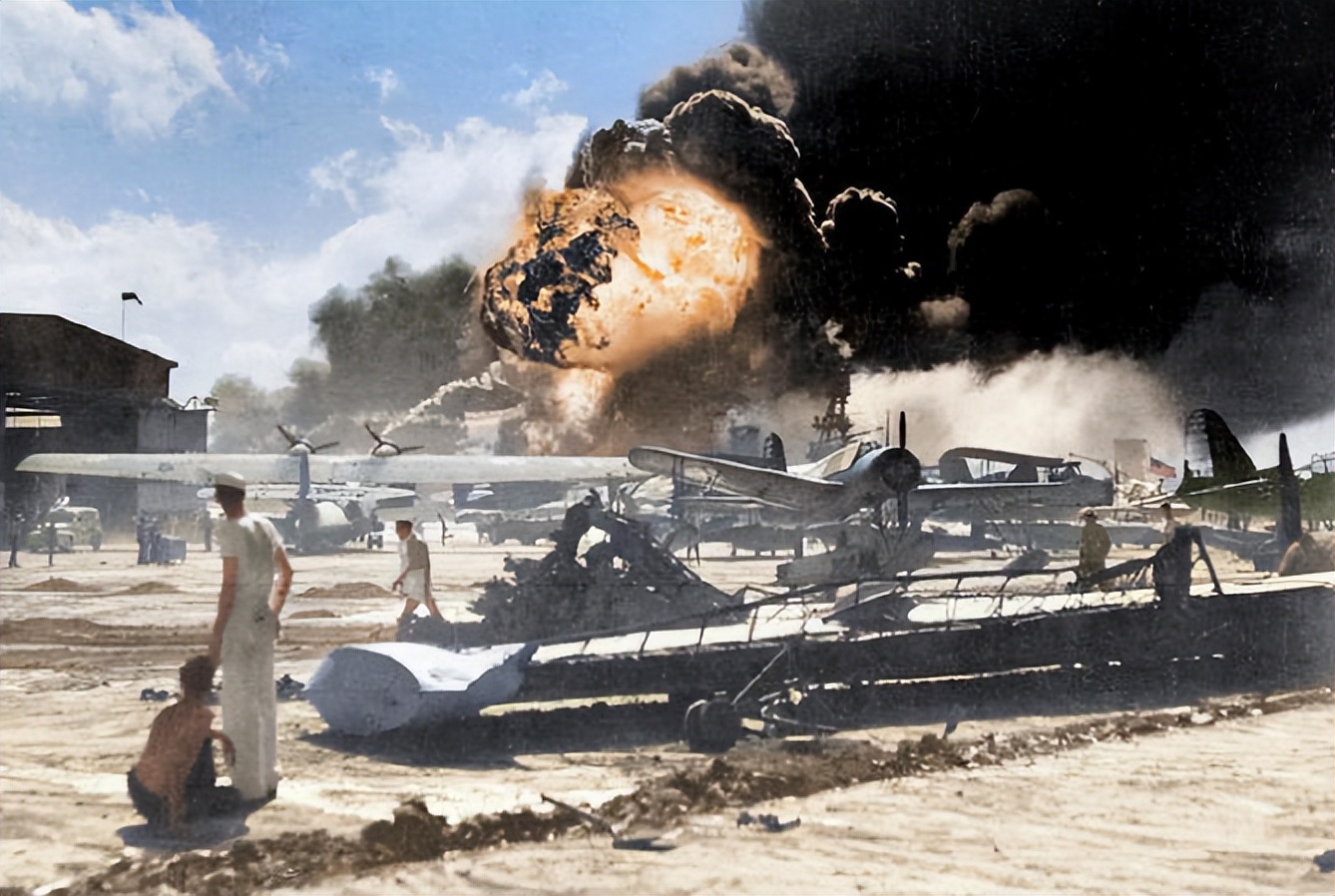 挨了谴责又被制裁,日本这老赖彻底急了,居然想出个馊主意:把债主弄死!只要把美国搞垮,欠的钱不用还了,还能抢美国的物资。于是憋着坏准备了好久,终于在1941年12月7号,派海军偷袭了美国珍珠港。这一下,太平洋战争直接爆发,美国再也没法当“甩手掌柜”了。