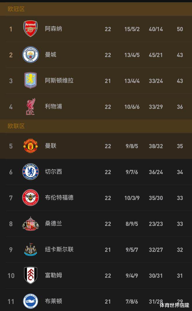 目前英超的局势还是扑朔迷离,积分榜第四到第十的球队仅差5分,一两场球的胜负就足以让积分榜有翻天覆地的变化。