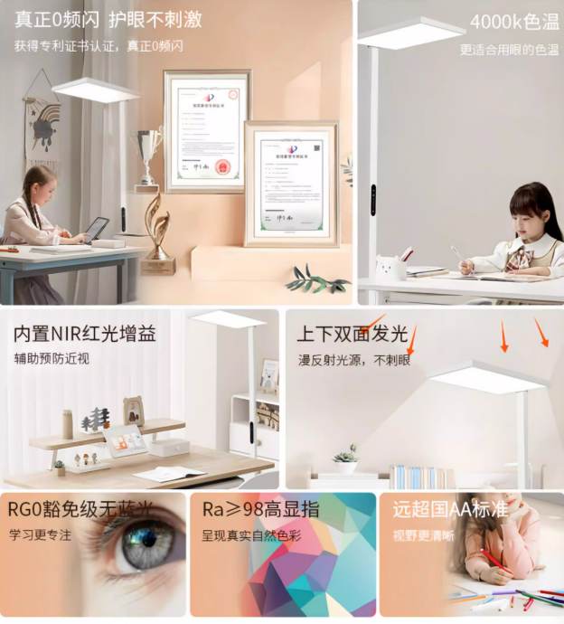 它采用了自然光全光谱技术,光谱宽度和自然光一模一样,就像把户外的阳光“搬”进了屋里。有害蓝光含量降低了96%以上,咱再也不用担心蓝光对眼睛的潜在伤害啦。益眼长波红光含量增加了120%以上,在消除蓝光风险的同时,还能加快缓解眼疲劳,让眼睛没那么容易累。就好比给眼睛做了一场舒适的“按摩”,视网膜细胞活力也跟着提升啦。