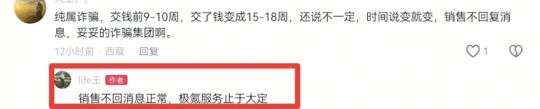 “高配早就说了交车很慢,两个月的时间,大家也做好了心理准备,可是突然变成三四个月甚至半年,这是什么意思?!”