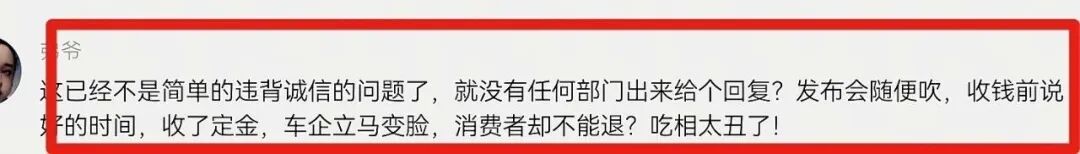 面对这些,预定车主们又气又无奈,不接受等车周期太长的部分用户,甚至要求退还定金了。