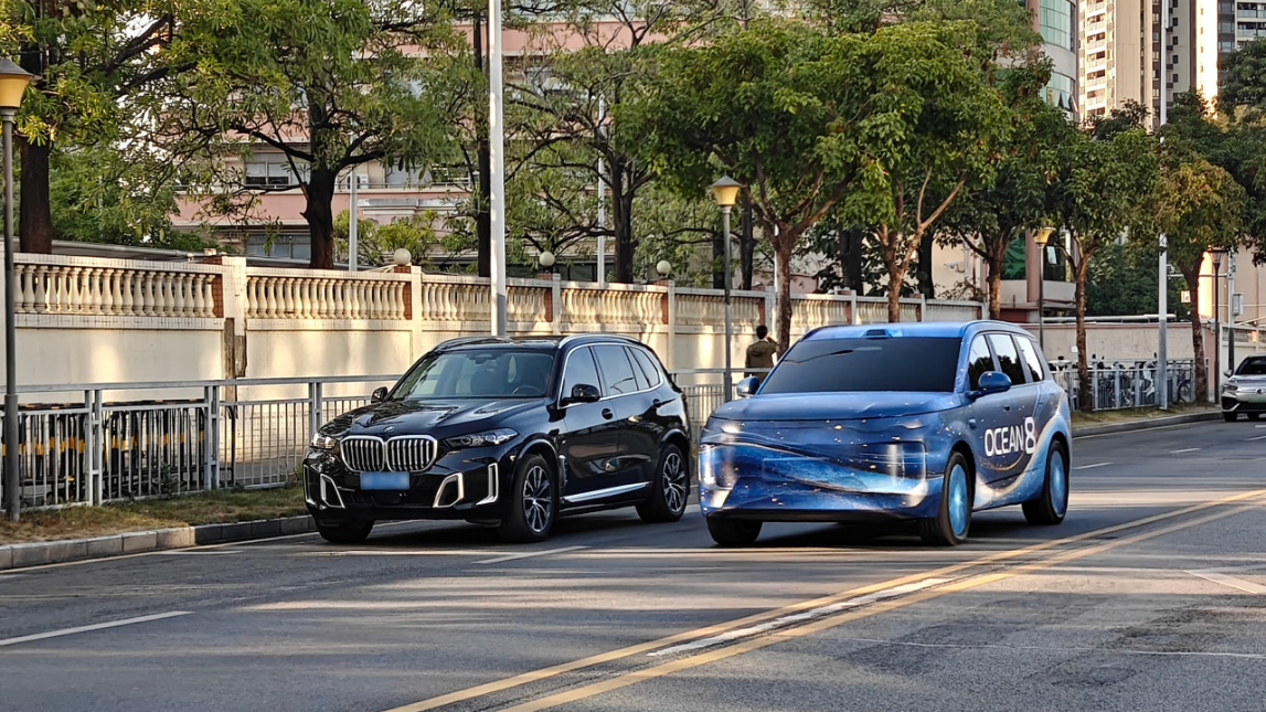 海狮08则展现大型SUV磅礴质感,整体硬朗简洁,与宝马X5同框对比时尺寸优势清晰,同样剑指5米车长、3米轴距规格 ,兼顾家用实用性与高端仪式感,补齐海洋网大型高端SUV空白。谍照中还能看到两款新车车顶搭载激光雷达,结合技术储备,或将具备高阶智驾能力。