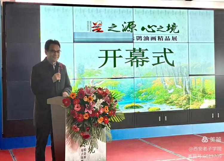 原陕西省人大常委会副主任刘维隆宣布:“美之缘·心之境——晏子朱鹮油画精品展”开幕。