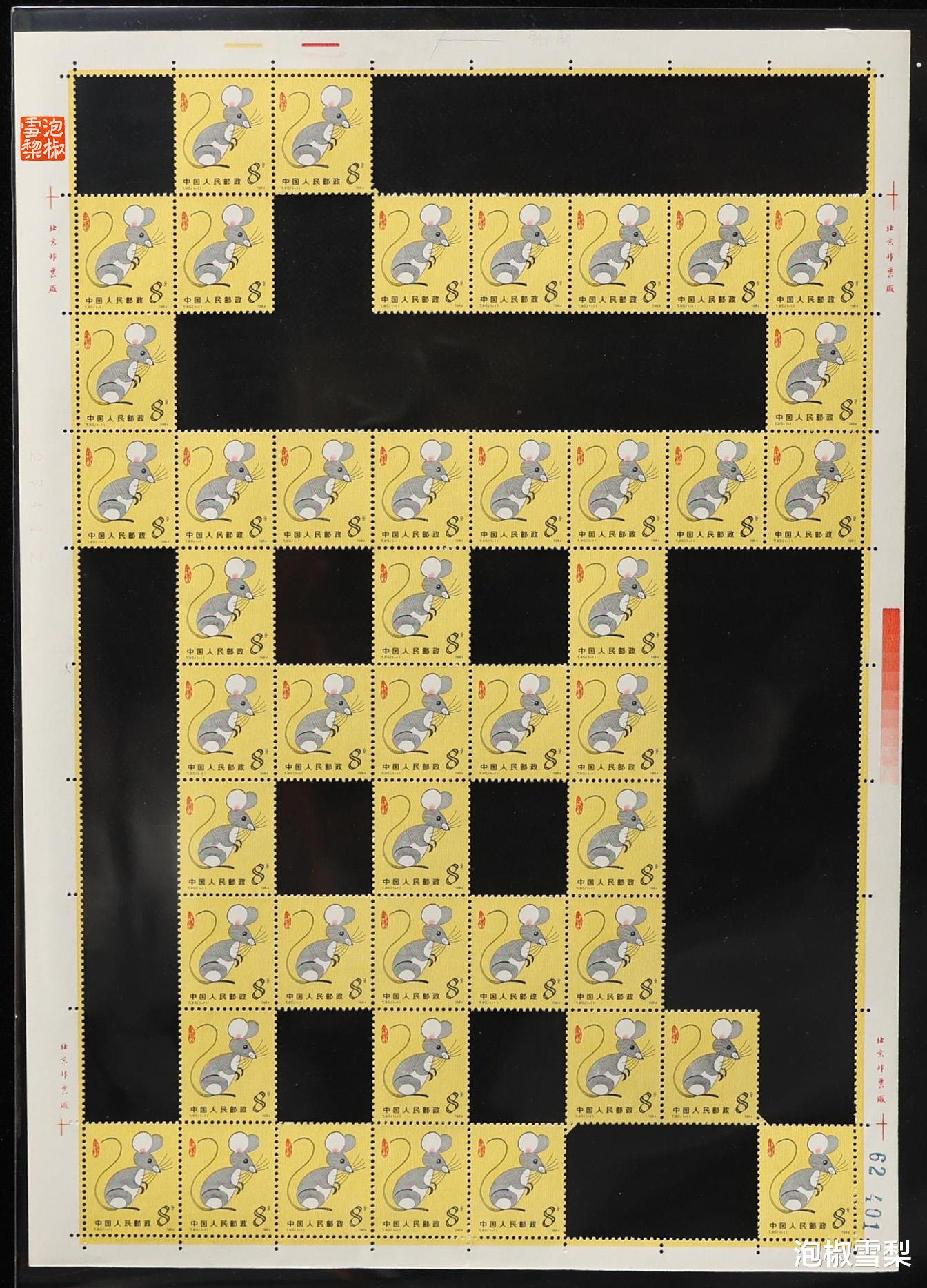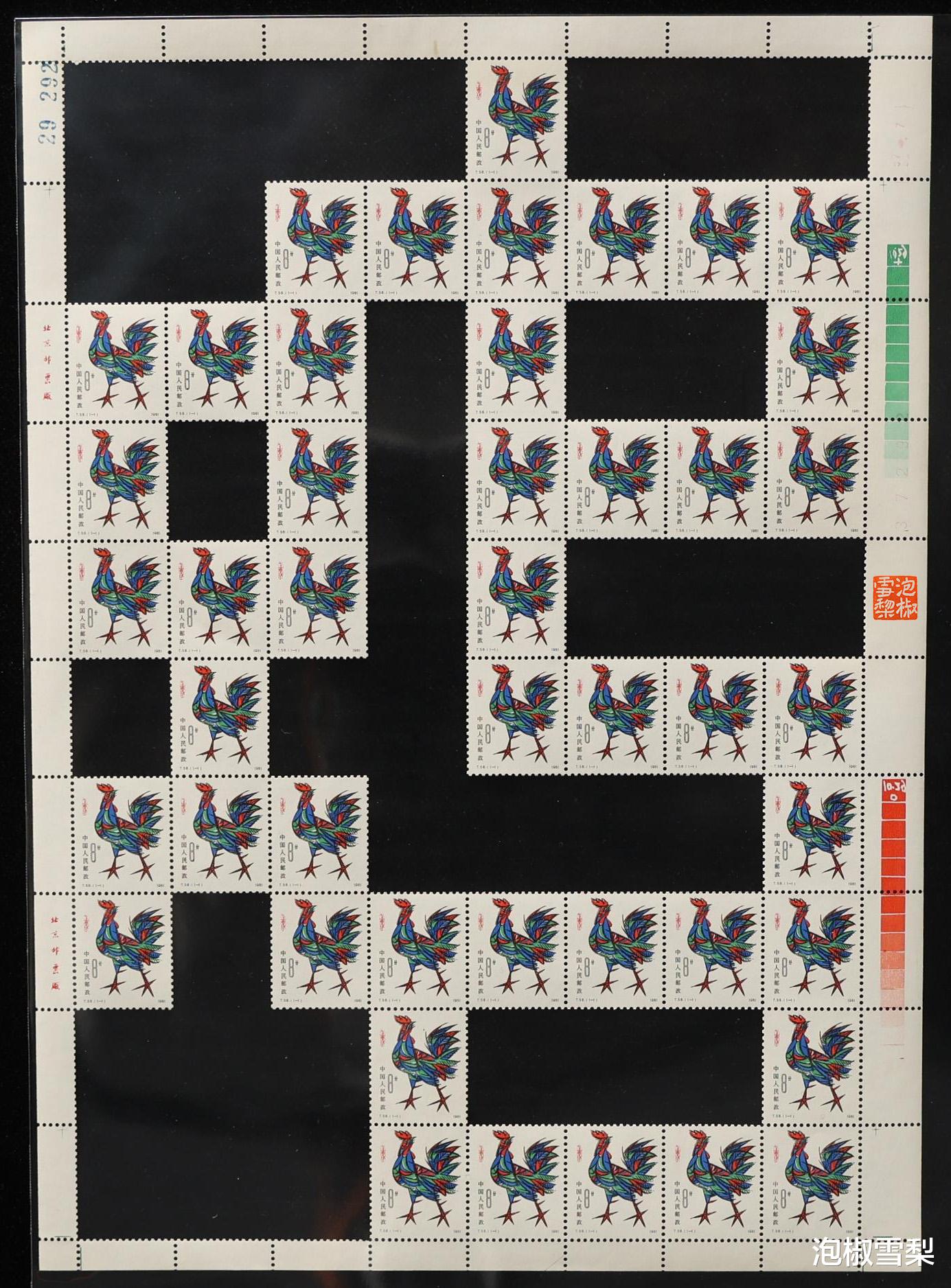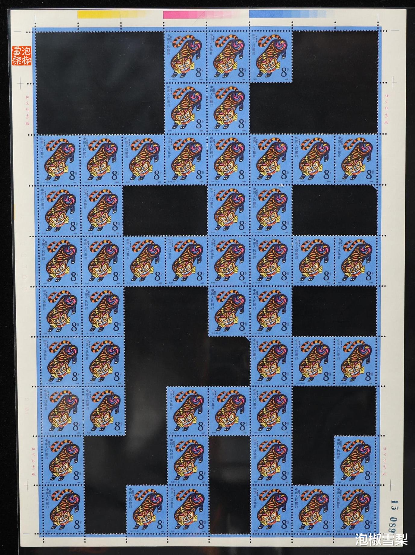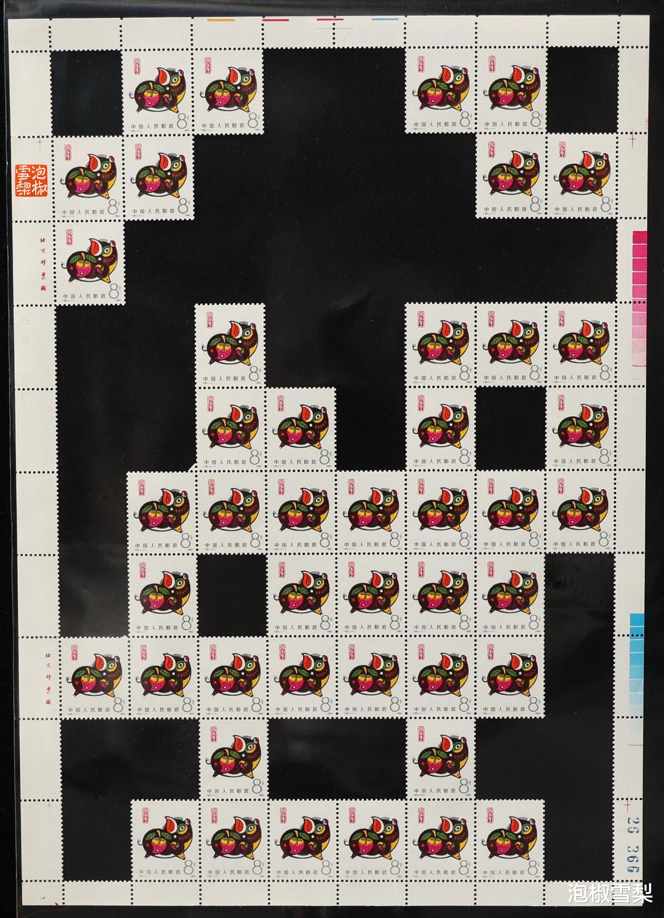 从图片上可以看到,每一个对角连接处,都至少有一枚邮票被毁,一些价值较低的生肖更是出现了两枚被毁的情况,所以想要模仿,也是需要做出牺牲的,只是对于邮票本身来说,还是有点可惜。