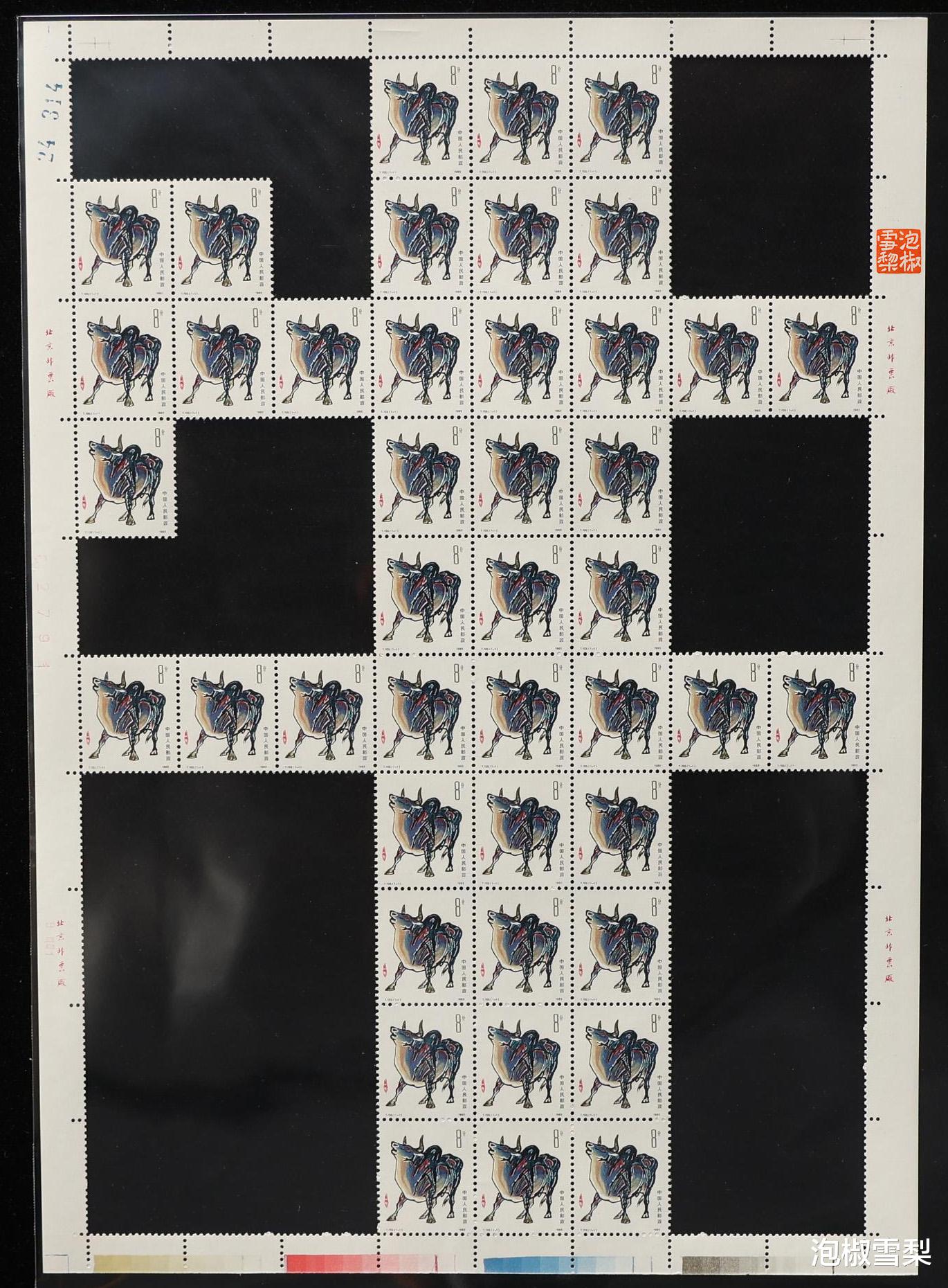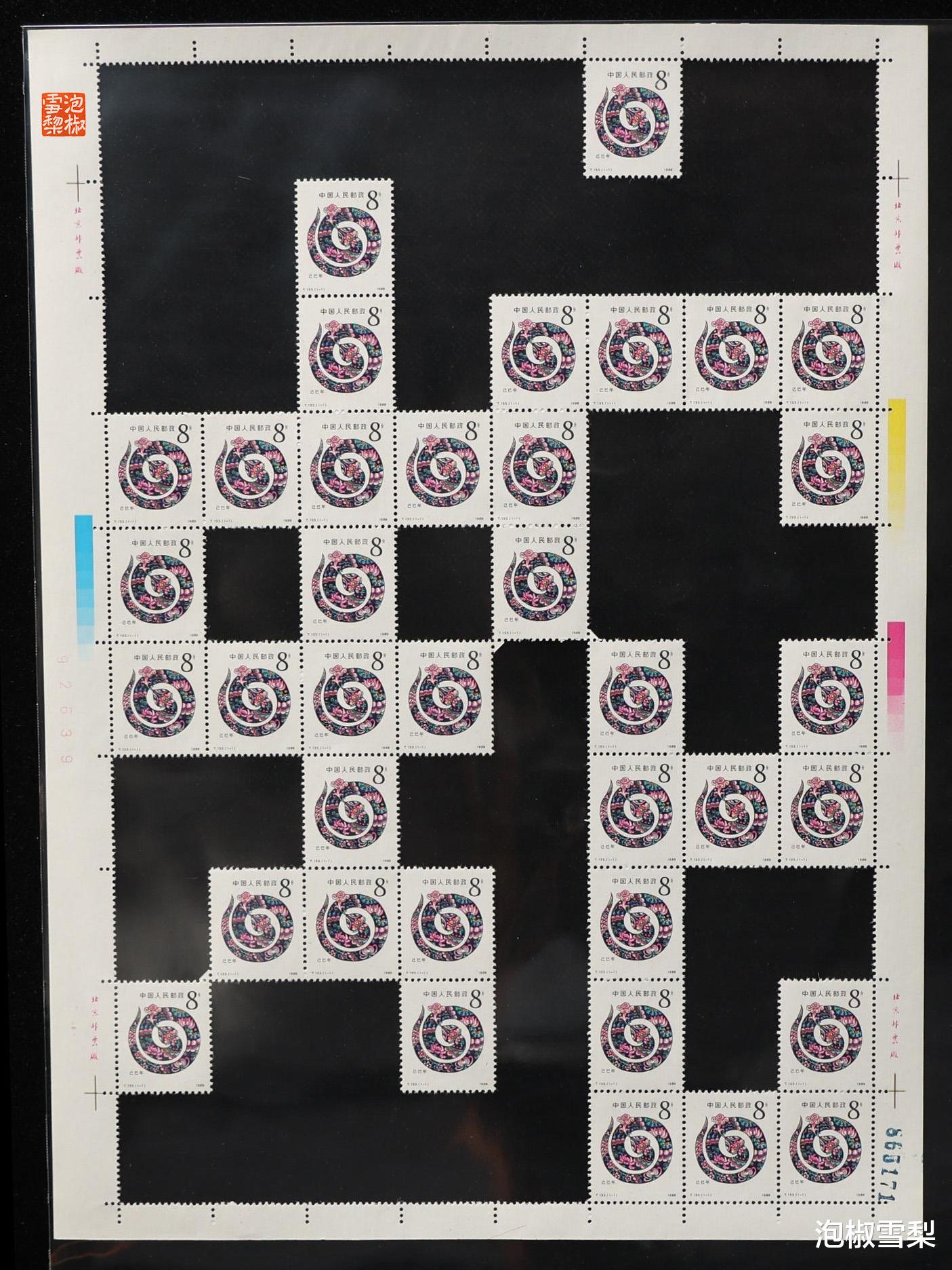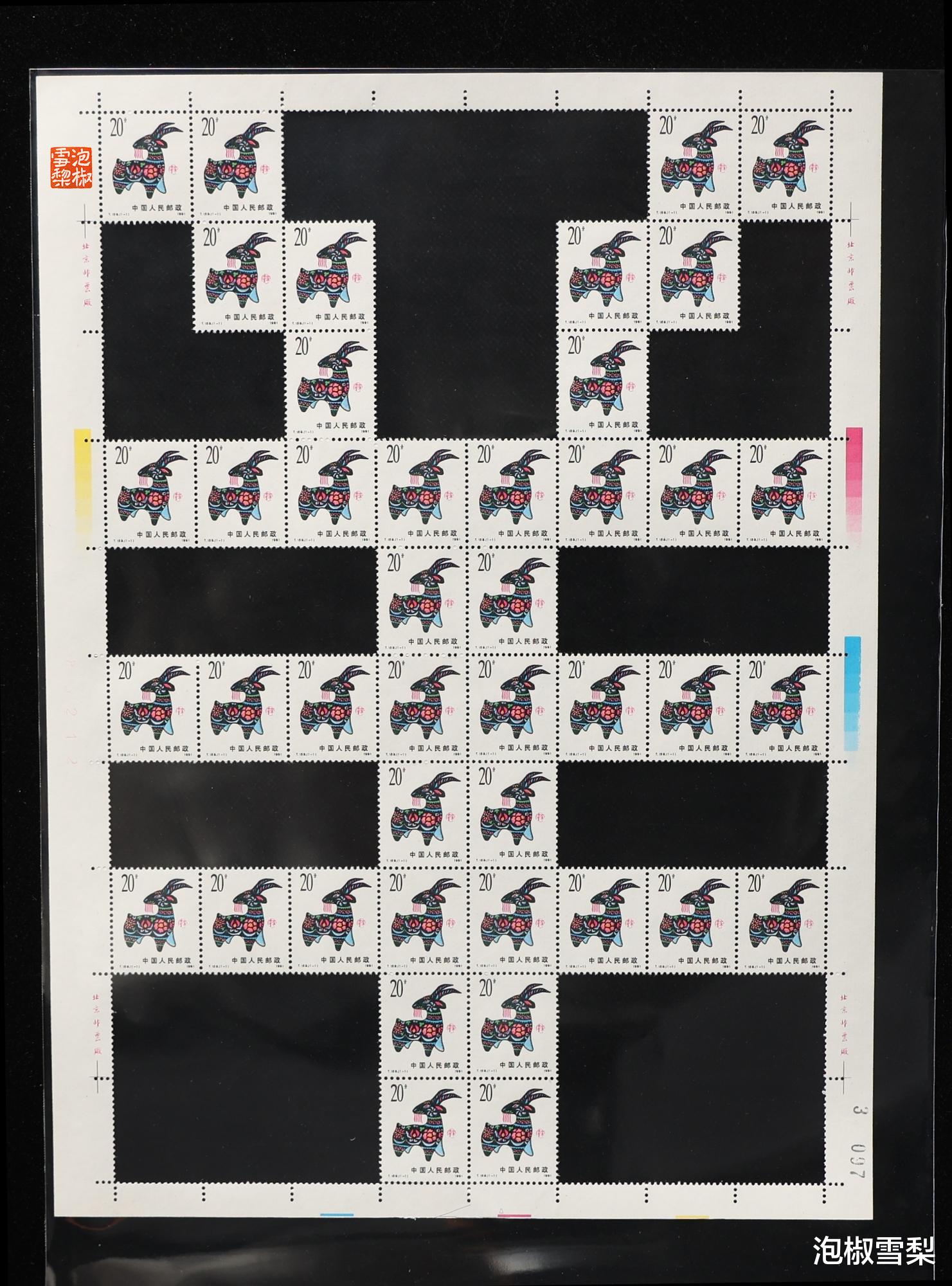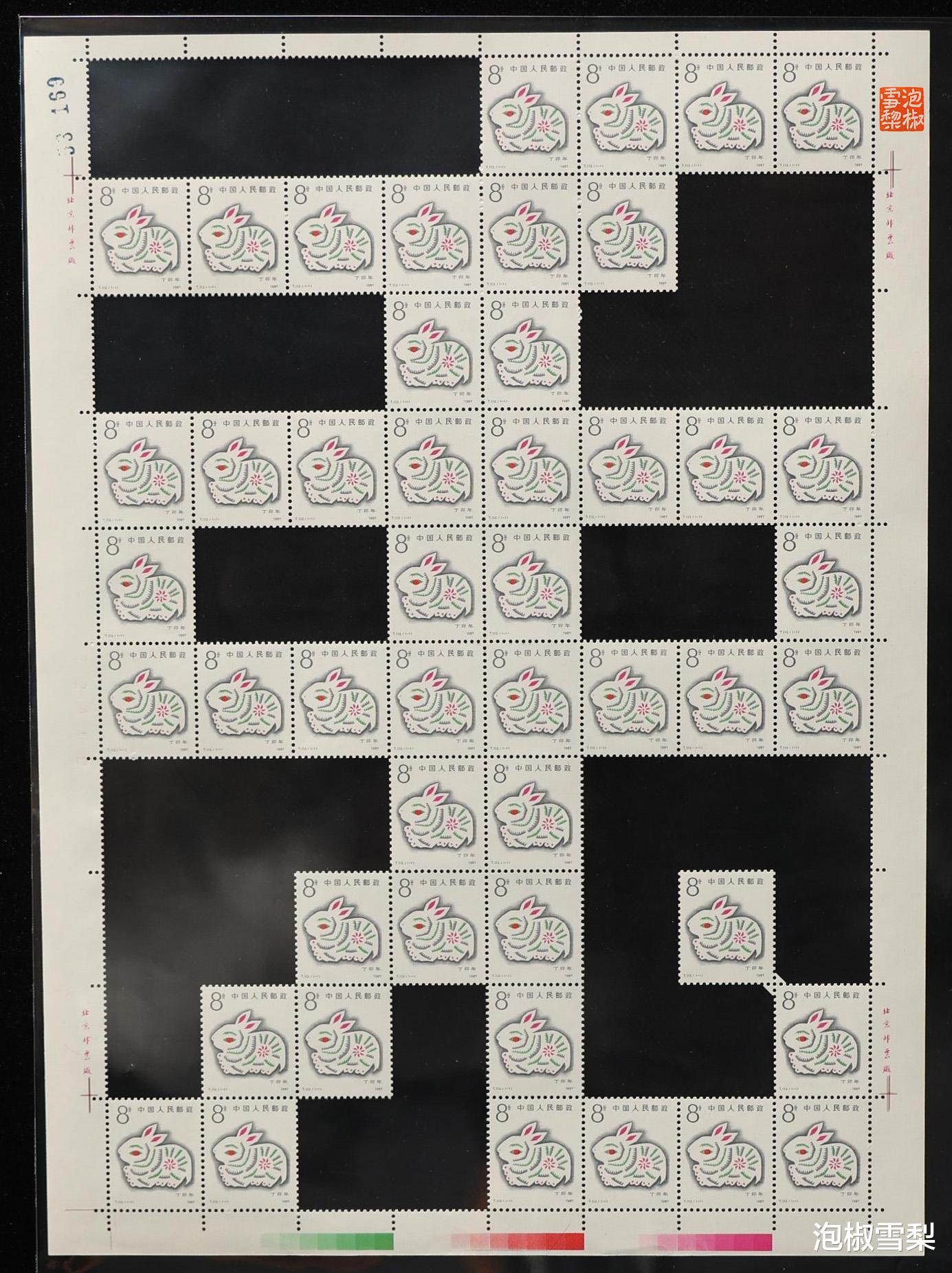 从图片上可以看到,每一个对角连接处,都至少有一枚邮票被毁,一些价值较低的生肖更是出现了两枚被毁的情况,所以想要模仿,也是需要做出牺牲的,只是对于邮票本身来说,还是有点可惜。
