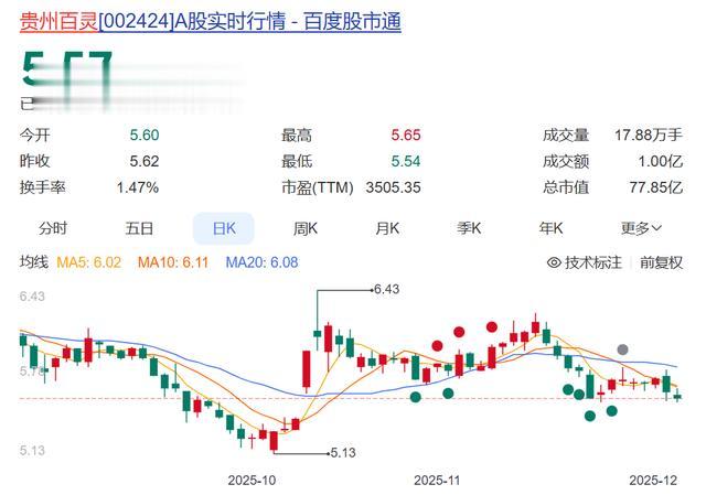 截至12月3日收盘,贵州百灵股价报收5.57元,年内涨超44%。