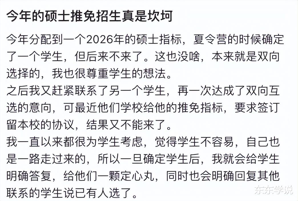 他气得在网上吐槽说;我拒绝导师又不是在9月25日的最后期限,是提前的通知的;名额不能替补,应该与我无关吧!