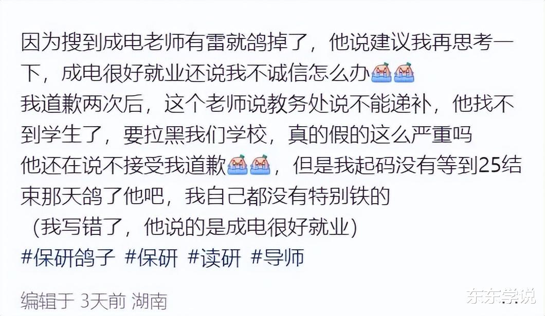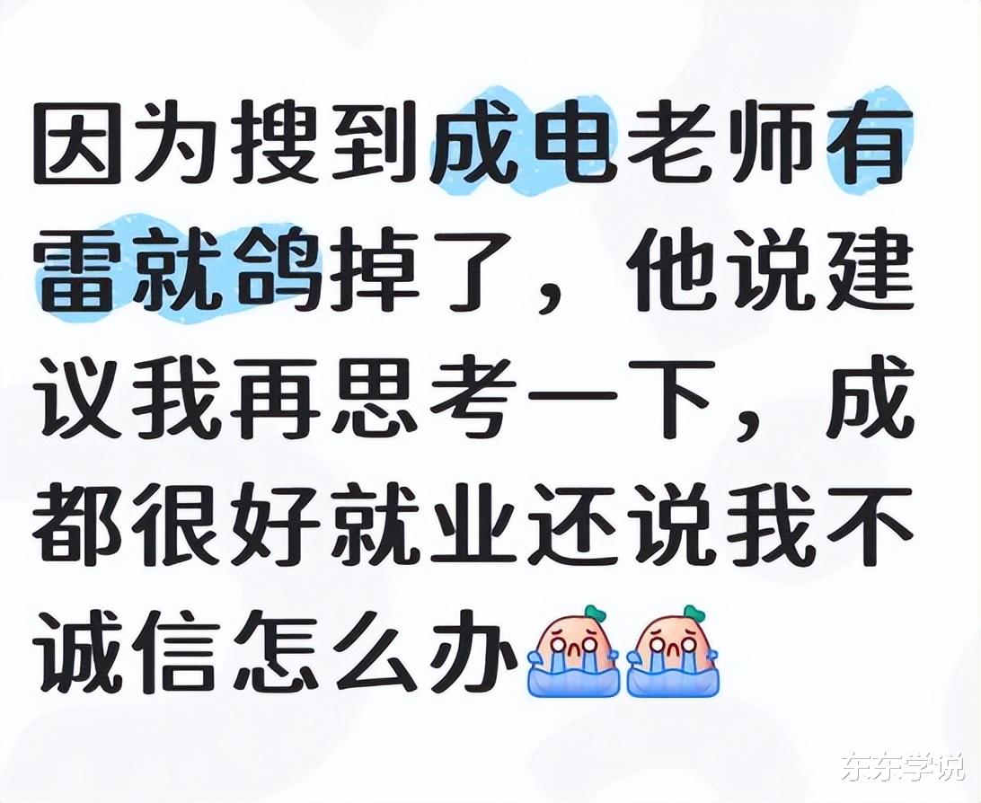 没有想到的是,这位湖北本科生,在“鸽”了导师后;导师联系他说:电子科大硕士就业很好,建议他再考虑一下。