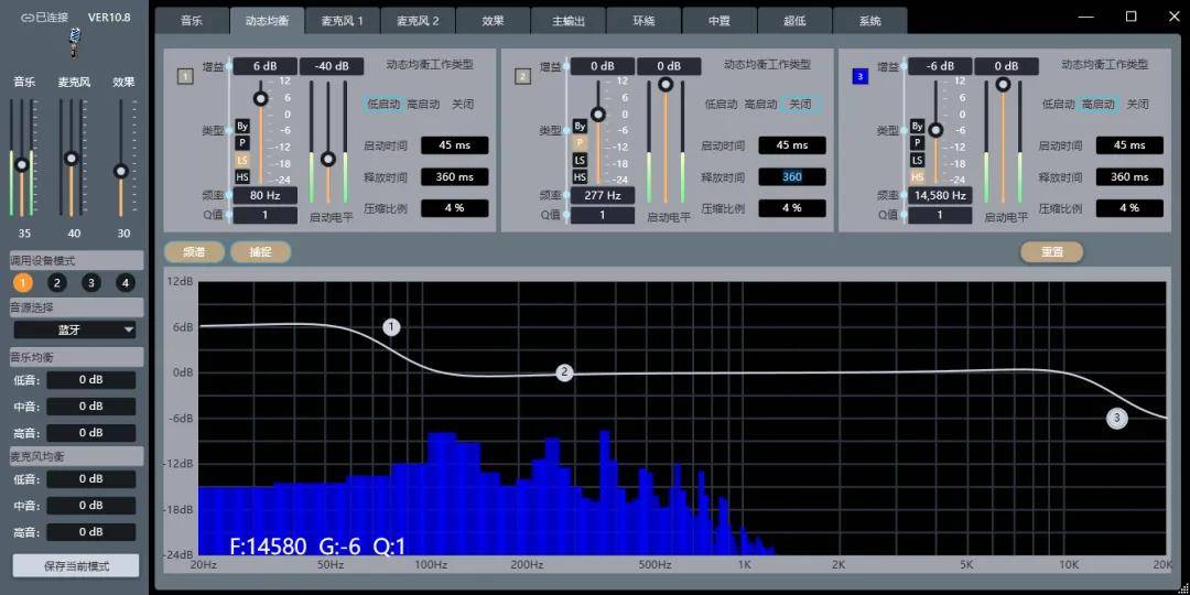 “动态均衡”这个选项卡也挺新奇,在卡拉OK效果器上还是第一次见。