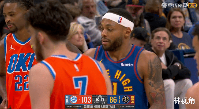 这一节后半段,约基奇和穆雷一起带队追分,约基奇今天被雷霆严防死守,上半场只出手两次,穆雷虽然出手不少,但效率太低,外线更是只有7中1,急需调整。