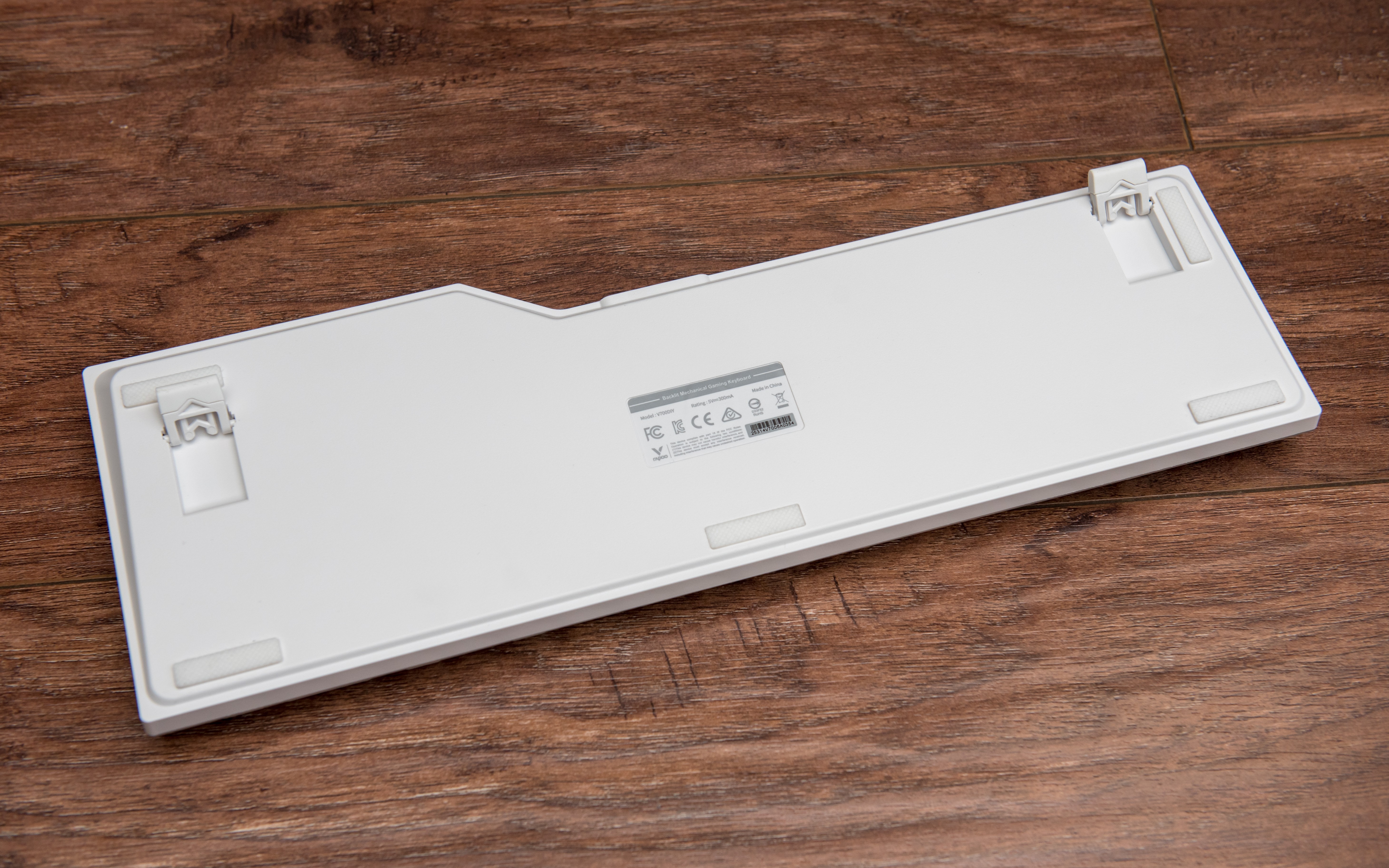 ▼键盘背面有5块防滑脚垫,但是没有配备其他键盘常见的排水孔