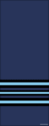 空军中校(Wing Commander):标志为三条细黑色中间浅蓝色条纹。海外活动礼服肩章为金色的三条细条纹。