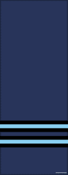 空军上尉(Flight Lieutenant):标志为两条细黑色中间浅蓝色条纹。海外活动礼服肩章为金色的两条细条纹。