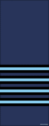 空军中尉(Flying Officer):标志为一条细黑色中间浅蓝色条纹。海外活动礼服肩章为金色的一条细条纹。