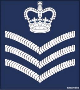 空军上士(Flight Sergeant):标志为皇冠和三V。