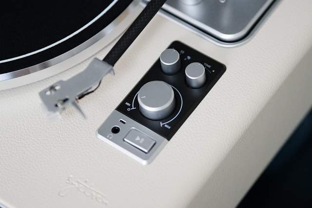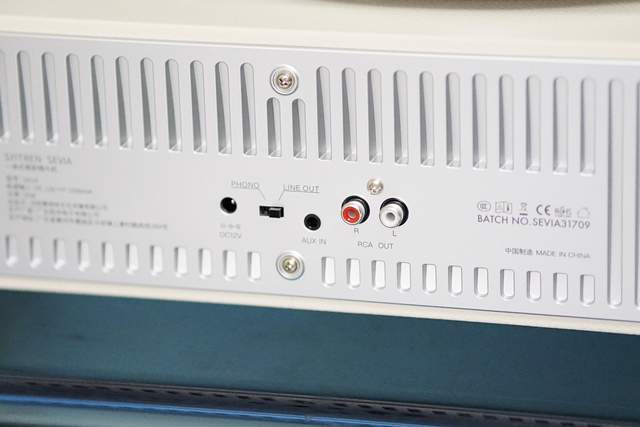 面板只有四颗按键:电源开关、模式调节、33/45转速、音量旋钮以及3.5mm耳机接口。