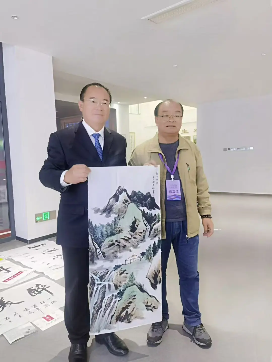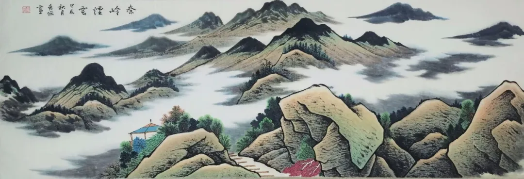 他将自己对艺术的热爱与对国家发展战略的深刻理解融入到作品之中。深入挖掘陕西本土文化元素,将秦岭风光、汉唐遗迹等巧妙地融入作品之中。在他的笔下,秦岭的雄伟壮丽、汉唐遗迹的古朴厚重被展现得淋漓尽致。他用艺术的形式,展现了三秦大地悠久的历史和灿烂的文化,为研究院打造地域文化品牌贡献了自己的智慧和力量,这些作品不仅在国内展览中备受关注,还通过研究院的国际交流平台,走向了世界,形成“山水画为引领,多元文化齐发声”的传播矩阵,切实提升中国文化的国际能见度。让更多的人了解到中国文化的博大精深,为 “一带一路” 倡议的文化交流与传播架起了一座桥梁。