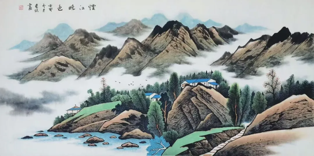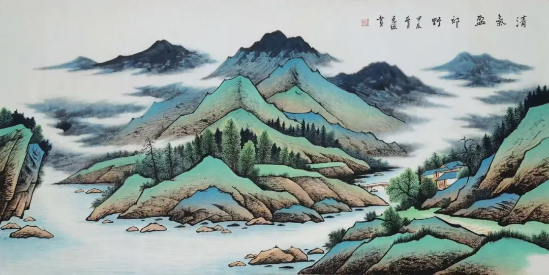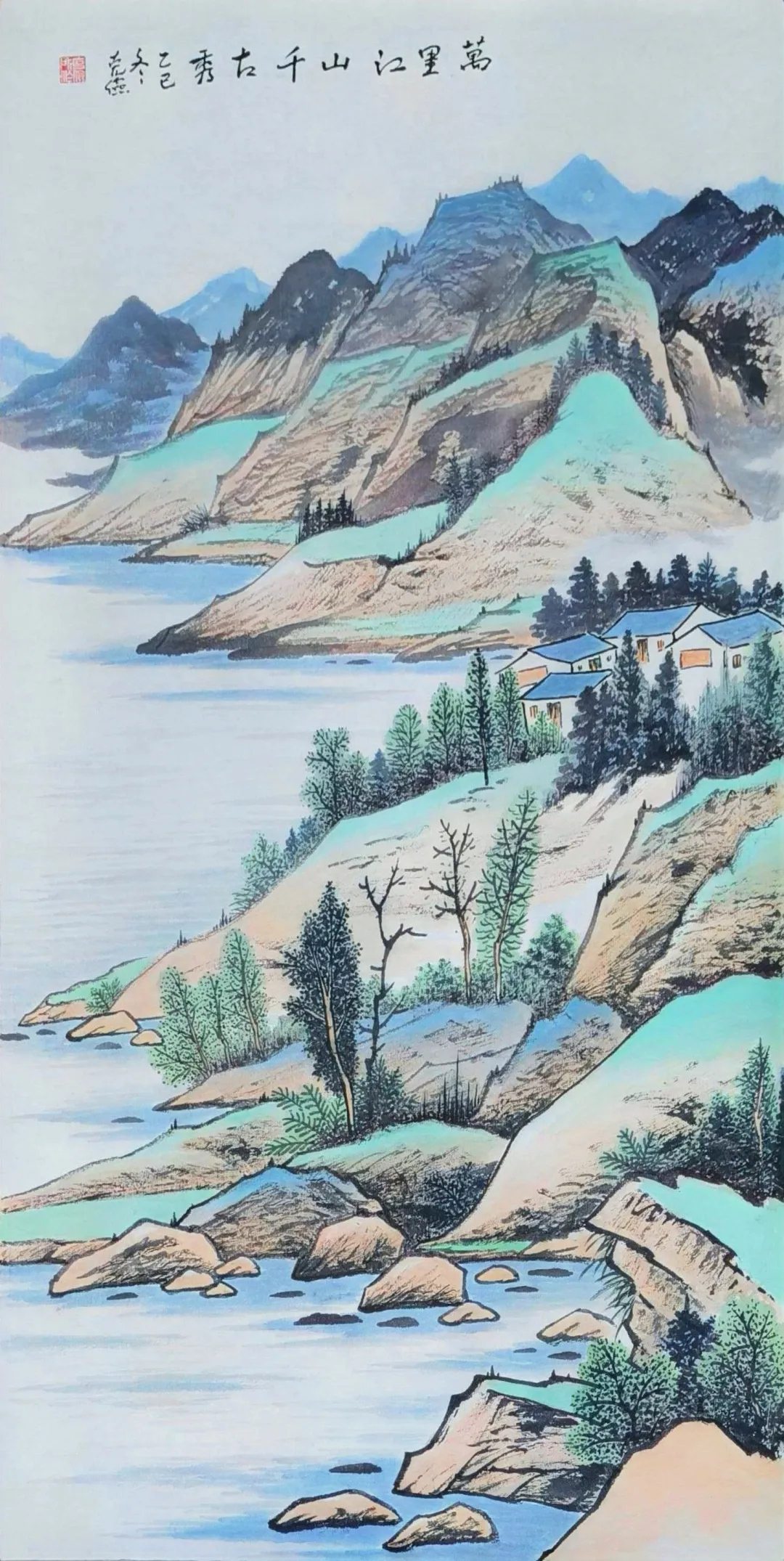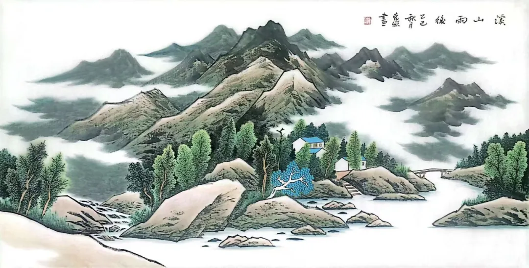 他提出的“写生即写意” 创作观,犹如一股清泉,为中国画的创作理论注入了新的活力。在他看来,走进自然,并非是简单地对自然景物进行描摹,而是要以一颗赤诚之心去观察、去感受、去体悟。以心观物,借物抒情,将自然之景转化为胸中丘壑,再通过笔墨表达出来,这才是写生的真正意义所在。正是这种对自然的敬畏与对生活的热爱,使他的山水画不仅是对景物的描摹,更是对生命与宇宙的深沉思考。在他的笔下,山石、树木、云水、人家,皆被赋予情感与灵魂。观其画作,如入其境,如闻其声,心灵也随之沉静、开阔、升华。