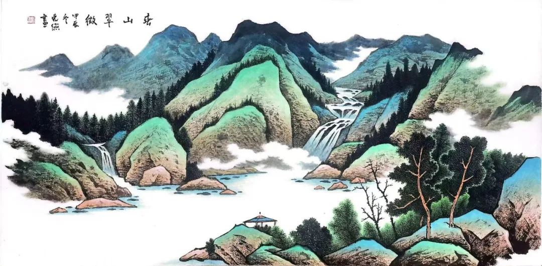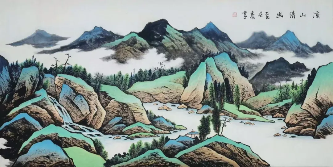 赵克俭的山水画既浸润着传统水墨的气韵生动,又融入了现代审美视角。他笔下的山峦叠嶂以“用笔如风”的洒脱勾勒轮廓,以“层次分明的色彩”渲染肌理,云雾缥缈处见留白意境,山石凝重处显皴法功力,形成“既真实又梦幻”的艺术境界。区别于程式化创作,他强调“细腻观察与独到解读”,每幅作品皆以独特视角捕捉自然脉搏,使作品兼具学术深度与艺术感染力,成为当代山水画创新发展的标杆性实践。