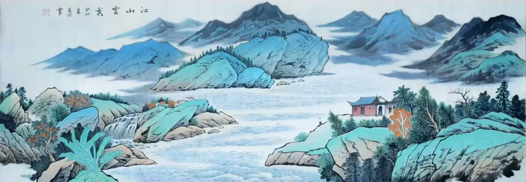 赵克俭巧妙地将这两种截然不同的山水特色融合在一起,在他的作品中,峰峦常以刚劲线条勾勒轮廓,那线条犹如铁画银钩,坚韧有力,展现出北方山水的雄奇磅礴;却又以淡墨轻染赋予氤氲水汽,那淡淡的墨色,如烟如雾,如梦如幻,增添了南方景致的清润灵秀。刚柔相济间,尽显山水魂魄,让人在欣赏画作时,既能感受到大自然的雄浑力量,又能体会到那份细腻的柔情。正如他所说:“我希望我的作品能够有北派山水的雄奇豪放,又有南派山水的清润秀丽,努力做到两者完美结合。”这种艺术追求,使他的画作在咫尺之间蕴藏万里山河,于虚实之间尽显天地精神!