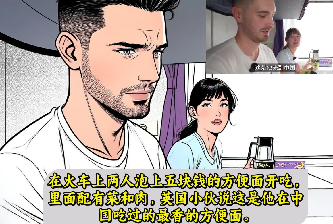 到了吃饭的时候,泡上一碗五块钱的方便面,里面配有菜和肉,英国小伙说是他有生以来吃过最香的方便面。