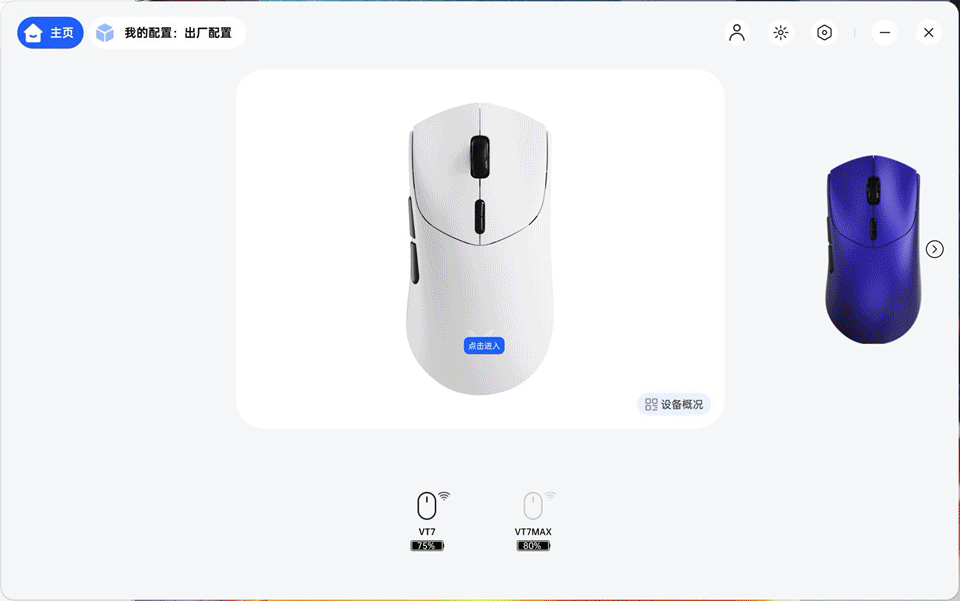 高配的光学引擎赋予了VT7的DPI可在50-26000之间以50为单位调整,VT7MAX的DPI可在10-45000之间以10为单位调整(10-10050DPI)。配合驱动内的“DPI预设”可以根据自己的需求进行任意的调整,还可X轴和Y轴单独调整,非常的个性化和人性化。