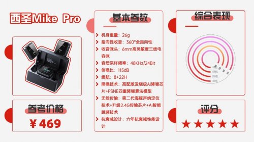 第六款:西圣Mike Pro无线领夹麦克风
