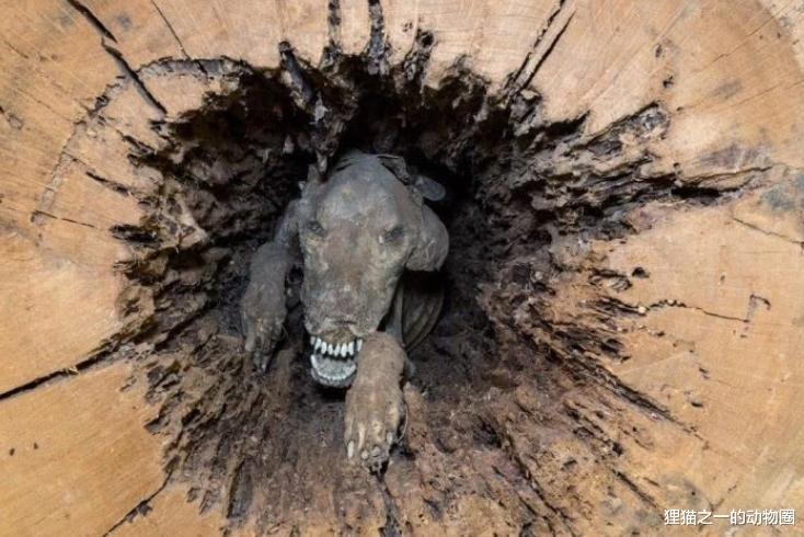 这只猎犬迷失在树冠中,在树干里待了大约二十年,躲过了主人的搜寻目光,也躲过了掠食者、昆虫和风雨的侵袭。
