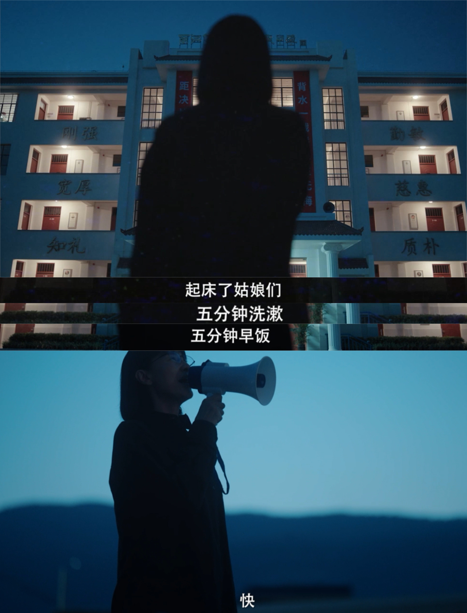 天空蒙蒙亮,“张校长”站在教学楼前召唤姑娘们起床。