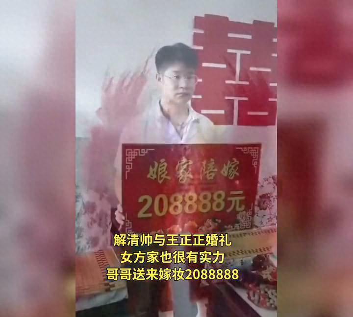 王正正站他旁边,安安静静的,笑起来两个酒窝特别明显。她家那边确实不简单,听说哥哥做生意多年,在本地也算有头有脸的人物。当天他亲自送嫁,一身深灰色西装,没多说话,把那个装着银行卡的红包递过去的时候,全场都静了一下。主持人刚要念金额,他就摆摆手,“自家孩子,图个吉利。”可底下人耳朵尖,早听清了——2088888。