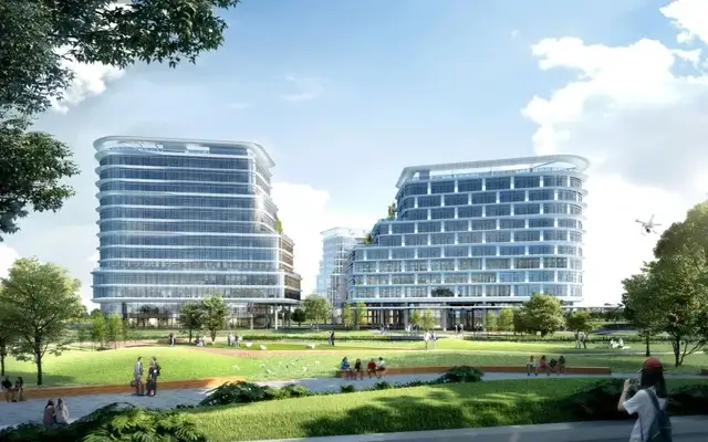目前,1号楼已竣工并启动招商,未来将吸引一批医药健康类企业入驻。而4号楼的8至11层则被规划为人才公寓,面向中青年精英群体,提供约131间客房,并配有公共大堂与休闲区域,为企业员工营造舒适便捷的居住体验。