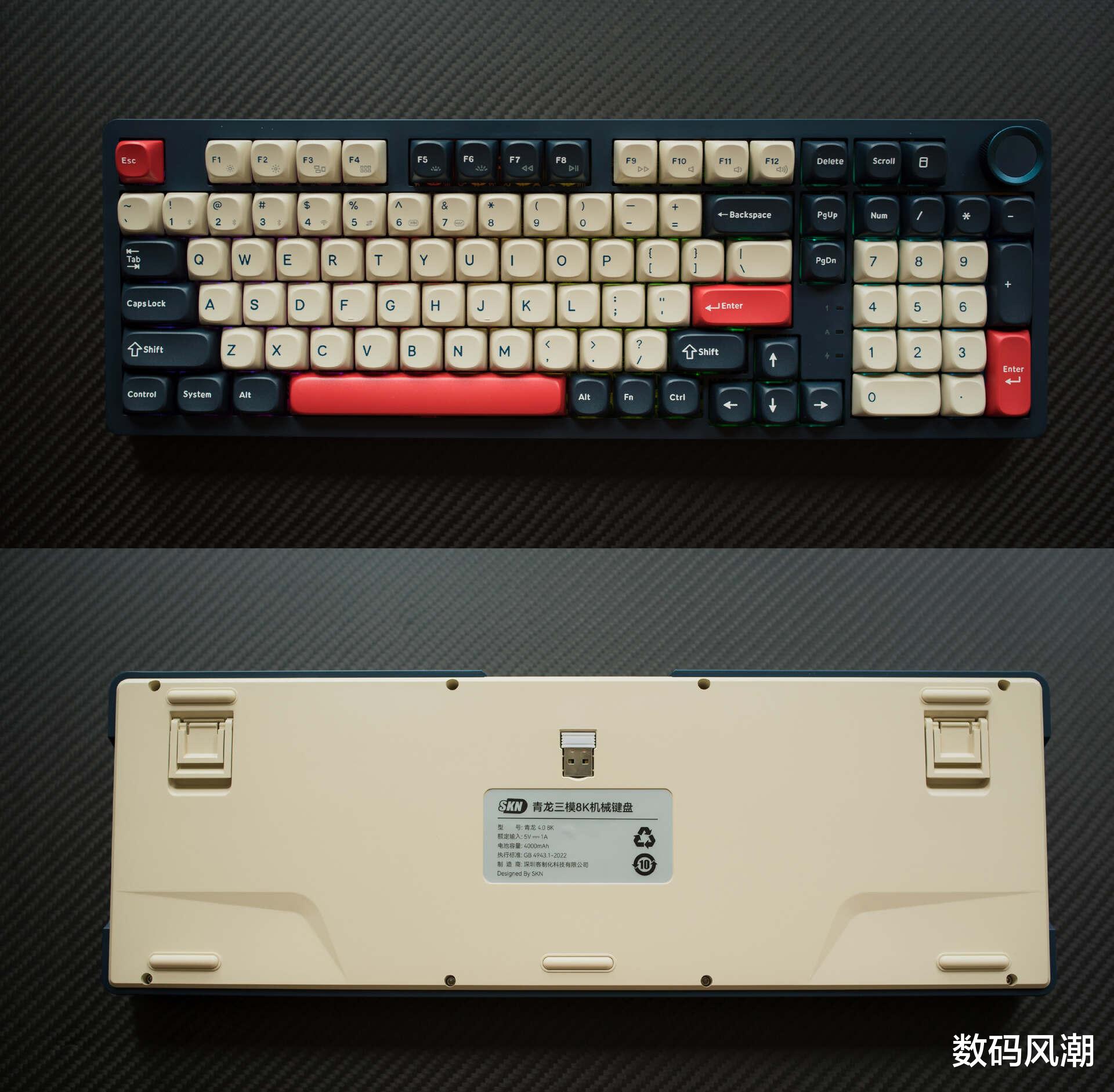 先说一下颜值,如今键盘圈呈现出:客制化并不一定高定价、量产款未必无聊没趣的景象。回看几年前,SKN青龙的键位布局还是客制化的主流设计,含小键盘、转盘就是最日常易习惯的结构。那么青龙4.0 8K继续沿用确实没有那么标新立异,但更强调内核,主打耐用实用好用的品牌调性完全对得起其产品定价。