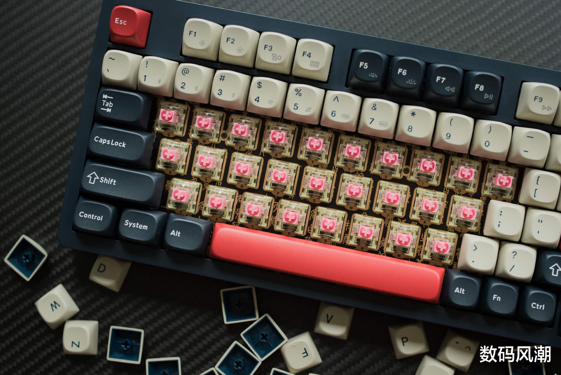 比起3.0版本有棱有角的工科男键帽,采用同样PBT双色键帽,更圆润的MDA球帽倒角多添一份时尚感。也正是因为此设计,键帽较3.0更高,键间更大,盲操使用更舒适。细看键帽工艺细节,无毛刺、水口处理得当、类磨砂质感、偏黄做旧的白键,都可以看出设计师对于经典元素的拿捏和应用都很到位。