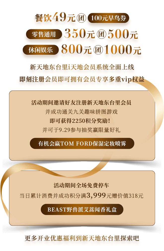 新天地东台里开街亮相,万券齐发,向你发出“开新”邀请,9.29-10.31,多重福利超级叠加,一站开启吃喝玩乐狂欢购!