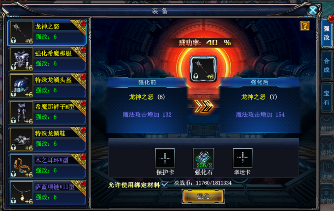 强化石:优先强化主武器,其次是防具,再然后是其他部位。收益最大化。