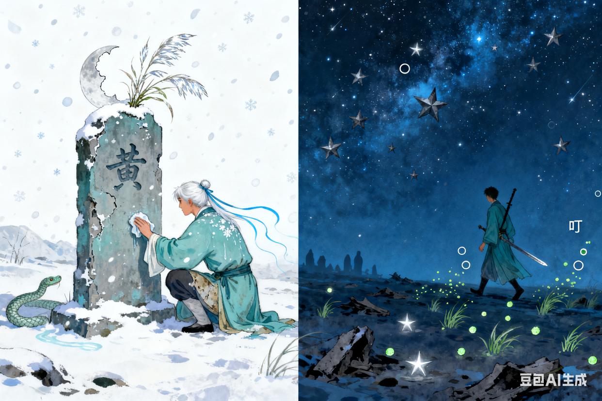 他每过一处废星,便撒下一粒草籽;草籽不发芽,却在真空里发出极轻的“叮”,像极小的人在敲一扇极远的门。