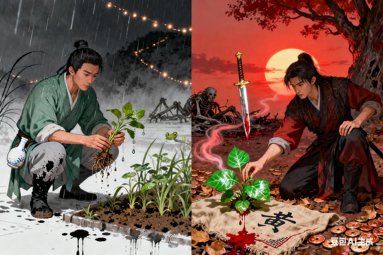 他弯腰去摘那株“千年灵药”,指尖碰到叶脉时,忽然想起两年前自己为了三株“凝露草”冒雨翻山的夜晚。