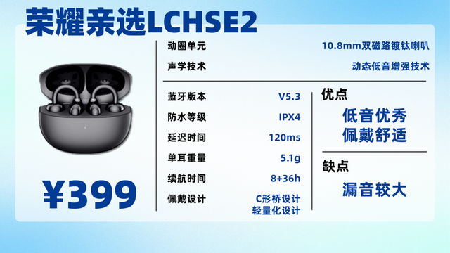 推荐理由:五百价位最强耳夹式!搭载防漏音模式、双磁动圈、错位+弧面耳托设计!
