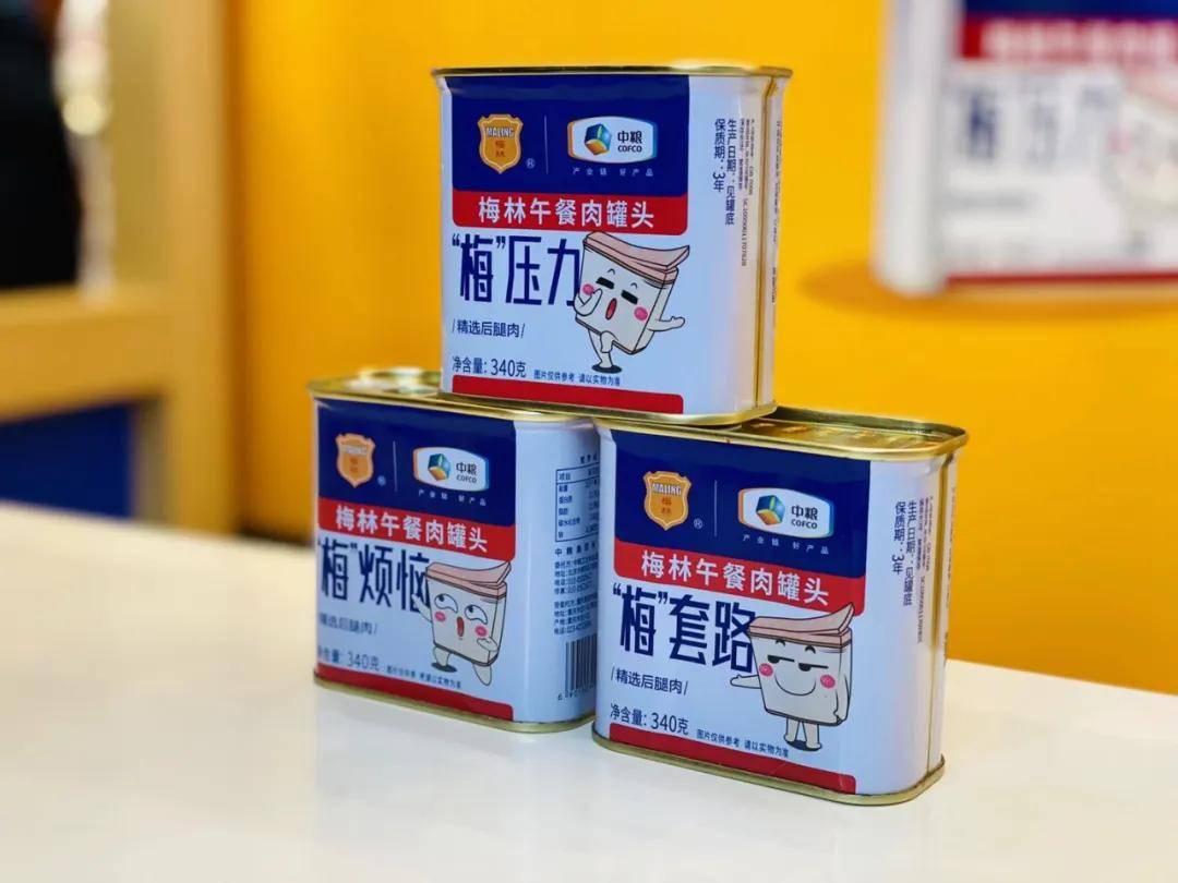 在营销侧,国产午餐肉品牌纷纷押注年轻化,捕捉新消费人群。例如,中粮梅林推出的“梅”系列午餐肉,以“梅压力”“梅烦恼”“梅套路”等谐音梗吸引年轻客群;其后,梅林还推出“梅错儿”系列单片装午餐肉,意在开拓随身休闲零食、办公室下午茶等新场景。