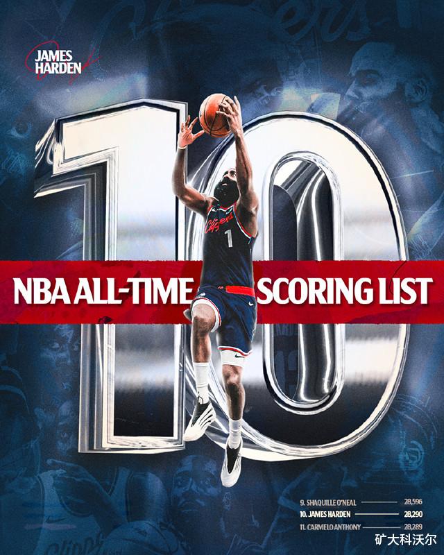 在与森林狼的比赛,哈登在第3节通过罚球得分,迎来生涯重要时刻——总得分超越安东尼,上升到了历史第10位!