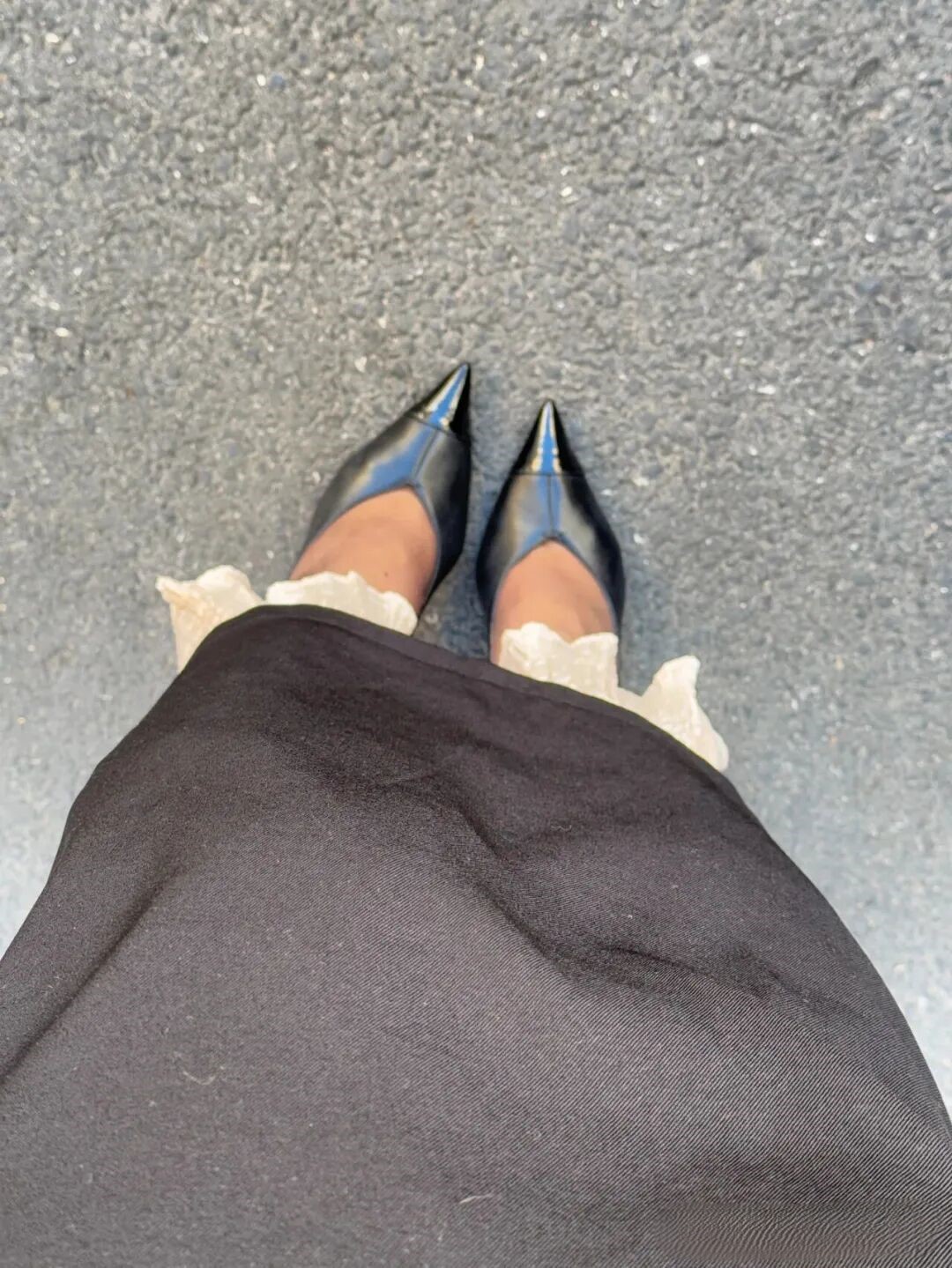 优雅黑发少女,黑白波点裙搭配闪亮高跟鞋,尽显时尚魅力!👗👠✨