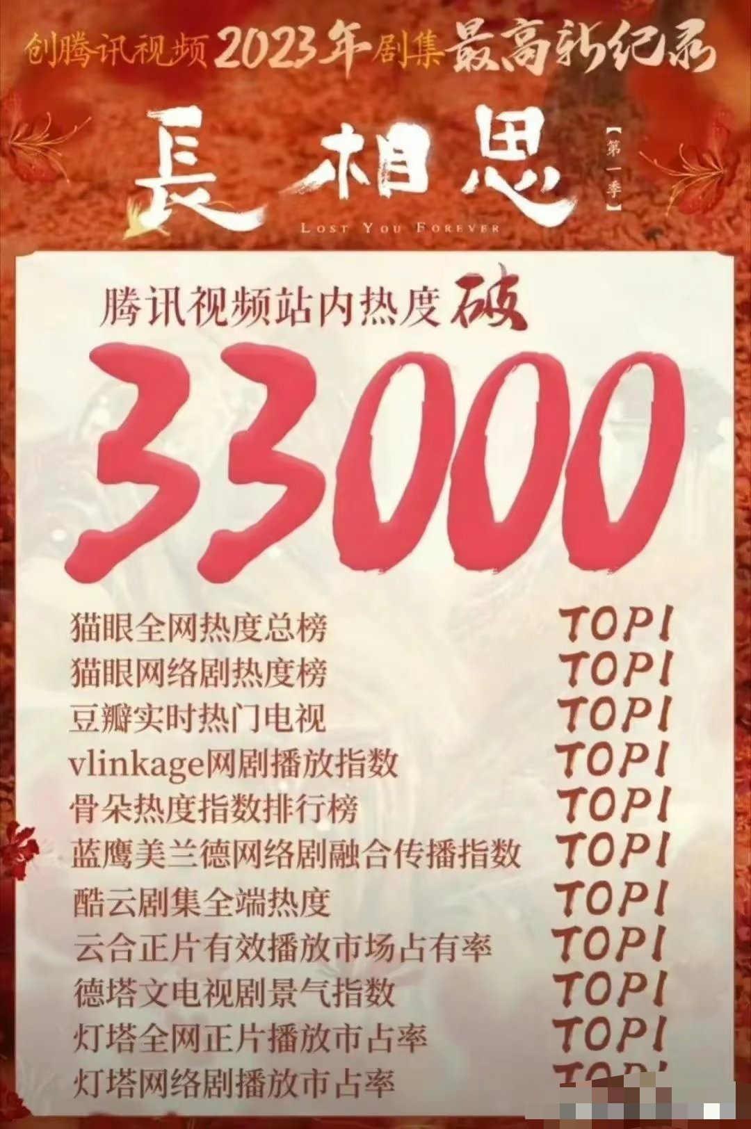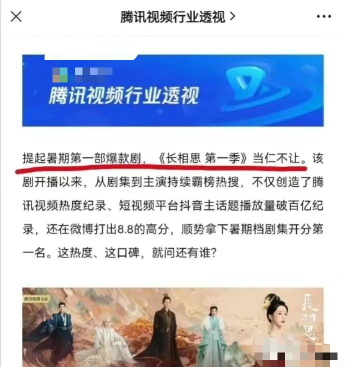 腾讯视频官方也认证了《长相思》是暑假的第一部爆剧!
