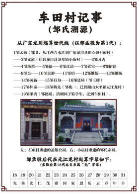 之前,我也了解相关族谱记载,特别是明代进士、名臣、“东林三君”之一、王阳明后学重要人物、谱牒行家、江西吉水籍邹元标(1551-1624,同为希尧公后裔)为当地邹氏族谱作序所述龙川分支,以及当代邹氏谱牒研究专家邹赤松、邹肃良等宗贤的网文论证,加上有族谱记述希尧公出生至孟敬公出生间隔近300年,我相信孟敬公是希尧公第8代,而不是龙川邹氏族谱、孟敬公墓碑、孟敬公祠牌位所载称的第5世,此争议在本文暂且搁置。我是孟敬公第24代,以孟敬公为希尧第8世计我是希尧第31世,若以孟敬公为希尧第5世计我是希尧28世。我提议龙川宗亲、族谱编委会正视该世代数问题、以及龙川往前追溯希尧公祖源错接问题(不属南宋状元福建邹应龙支系,邹应龙即邹景初(1173年-1245),其出生时,江西邹希尧(1133-1216)已40岁),建议在引述旧谱时,写上现代考证情况、意见倾向,以利于宗亲辨析。
