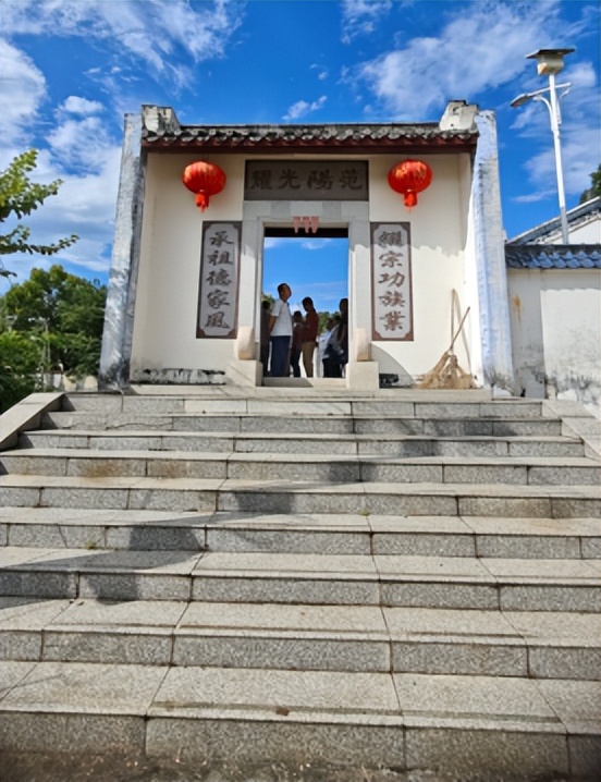 在围墙设有两个不同方向的院门:祠堂左方围墙檐下院门与前面地坪、村道相通,此门石刻“范阳光耀:继宗功族业,承祖德家风”,进去左右墙上嵌石刻写:祠堂重修记、捐款芳名录;祠堂右前角围墙檐下院门与旁边下輋小学球场相通,此门口刻书“钟灵毓秀:山环龙腾舞,水绕凤翔鸣”。院门、祠门悬挂有大红灯笼,印有“鄒”字及祝福语,喜气洋洋。