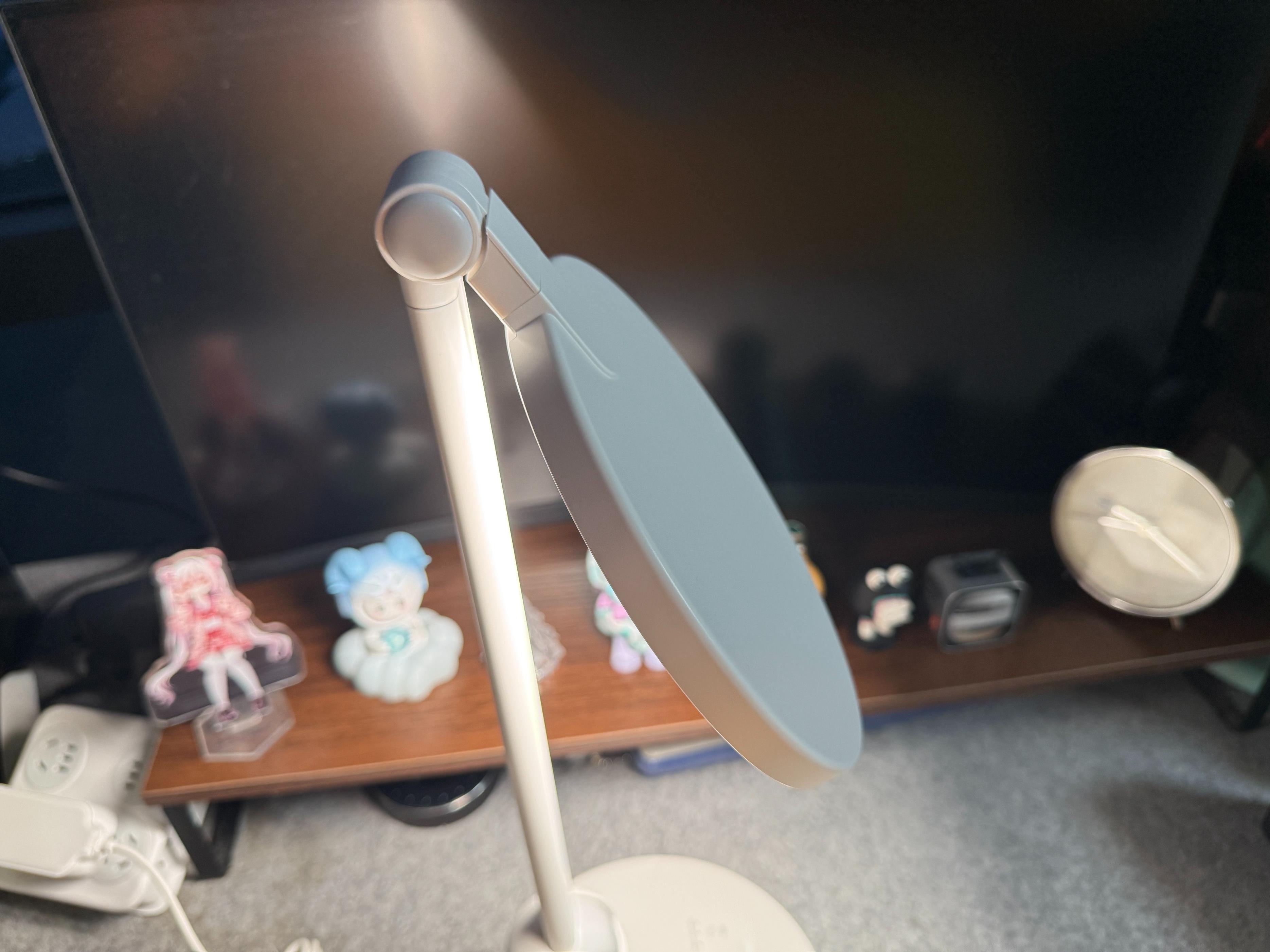 拆箱时就被它的颜值戳中——奶白色灯体搭配磨砂质感,双转轴灯头像机械臂一样灵活,360°旋转毫无压力,结果发现灯头居然能稳稳悬停在任意角度,低年级读绘本、高年级刷题都能精准投光。