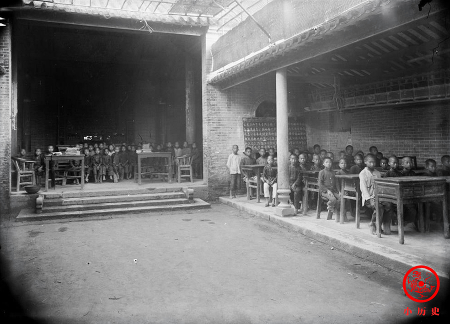 这所新学校临时借用场地上课,在校生都是男孩。晚清是新式学堂的草创阶段,一时来不及建设校园,就借用祠堂、庙宇或其他闲置建筑充当教室;虽然设置了地理、音乐、数理化等新课程,因为缺乏师资,其实上课还是以四书五经为主,新课程成了摆设。