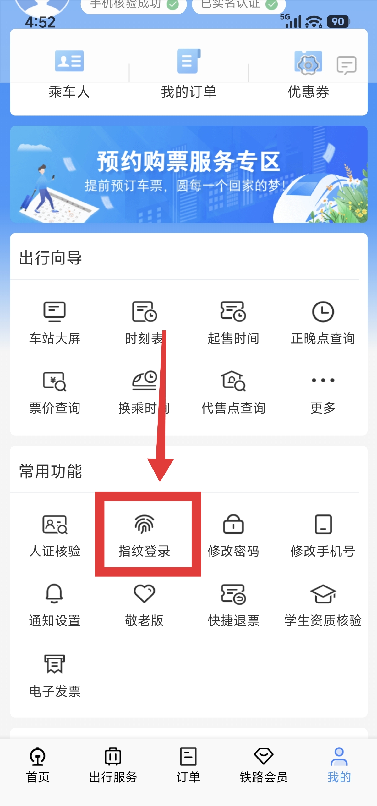 3.进入到我的页面后,点击【指纹登录】。