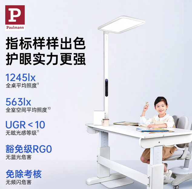 这款灯是柏曼高端系列代表作,主打德系严谨光学标准。它搭载升级款德系高频驱动芯片,将频闪频率稳定控制在3125Hz以上,实现无可视频闪危害。除无频闪优势外,这款灯还内置精准环境光感应器,能实时捕捉环境光变化,自动调节亮度和色温,让光线始终保持在最舒适的范畴。